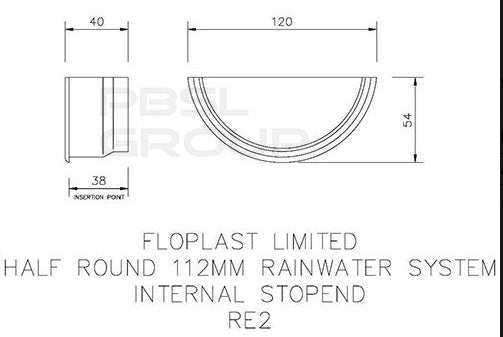 Floplast Half Round Gutter Internal Stopend 112mm White
